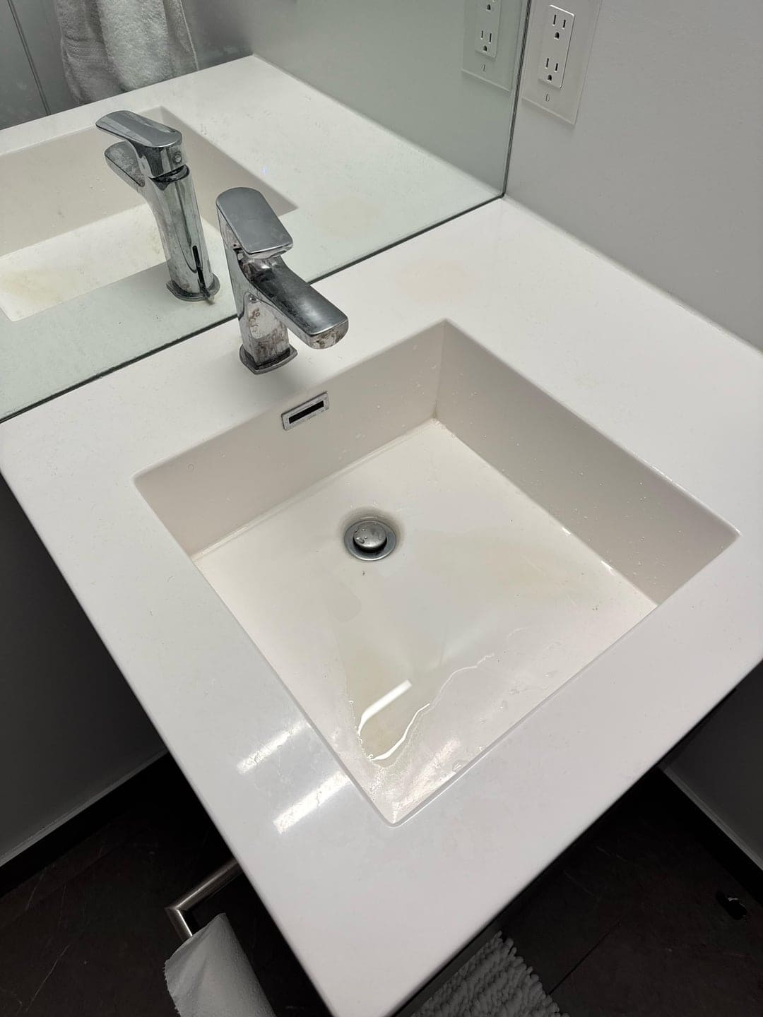 Раковина полностью плоская, из-за чего вода никогда не уходит полностью