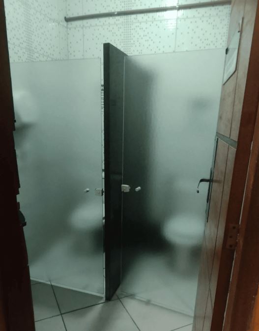 Студенты нашего курса жаловались на недостаточную конфиденциальность в уборной. Тогда, чтобы решить эту проблему, нам установили стеклянные двери
