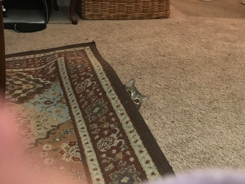 Взглянула на пол и увидела, как она пристально глядит на меня из-под ковра