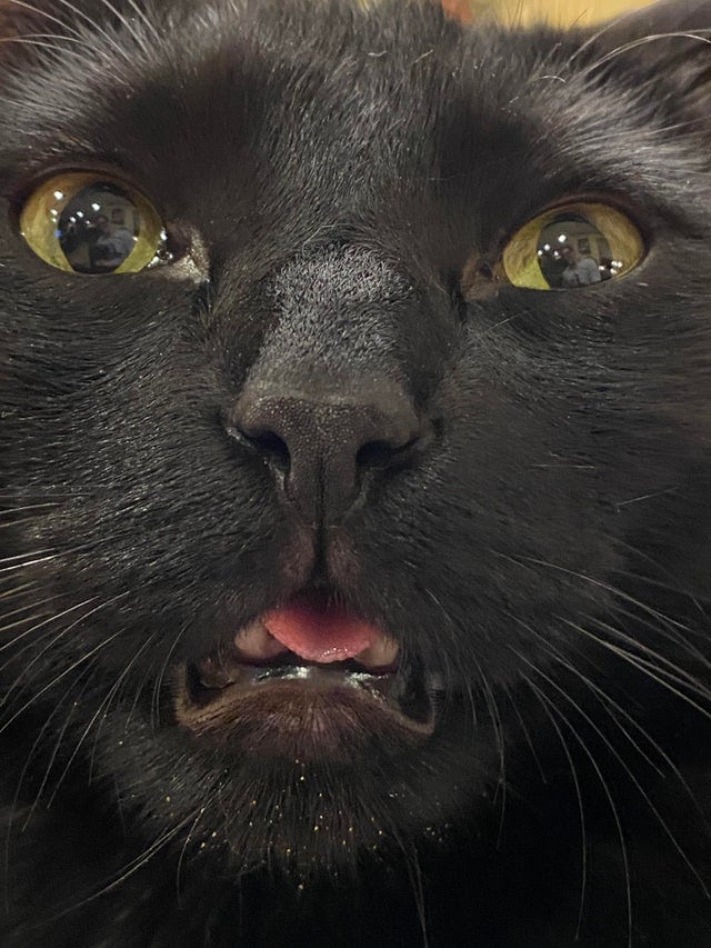 Я не ловила момент, когда он мяукал. С этим выражением мордочки он просто сидел несколько минут