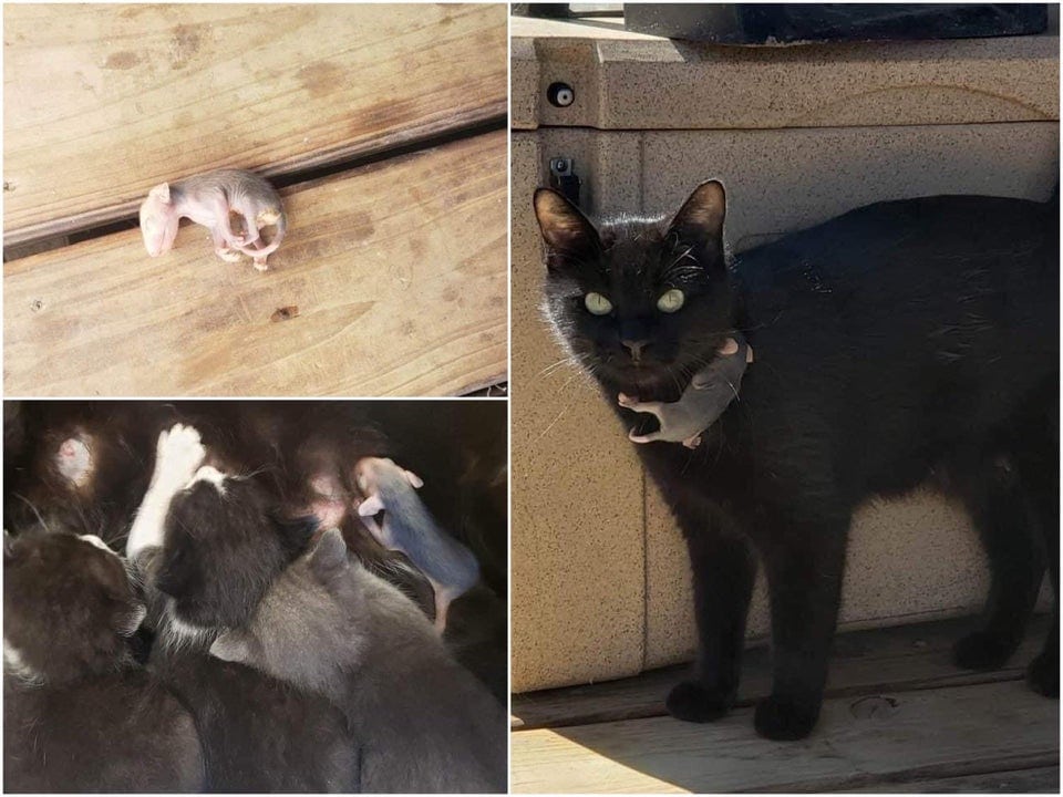 У кошки родились котята, а потом она нашла брошенного детёныша опоссума и забрала в семью