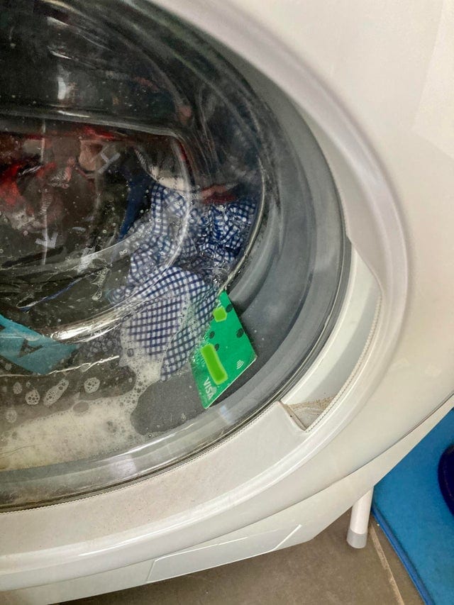 Не заметила, как с полки упали два рулона туалетной бумаги прямо в стиральную машинку
