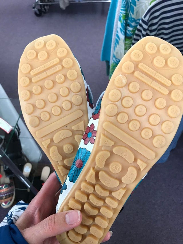 В благотворительном магазине я нашёл обувь с подошвой в виде пульта