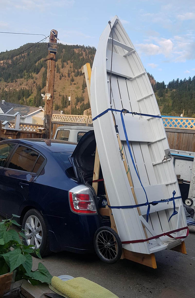 “Я все-таки придумал, как довезти мою лодку до реки на седане. Какой-то парень на парковке даже восхищался придуманной мною конструкцией.”
