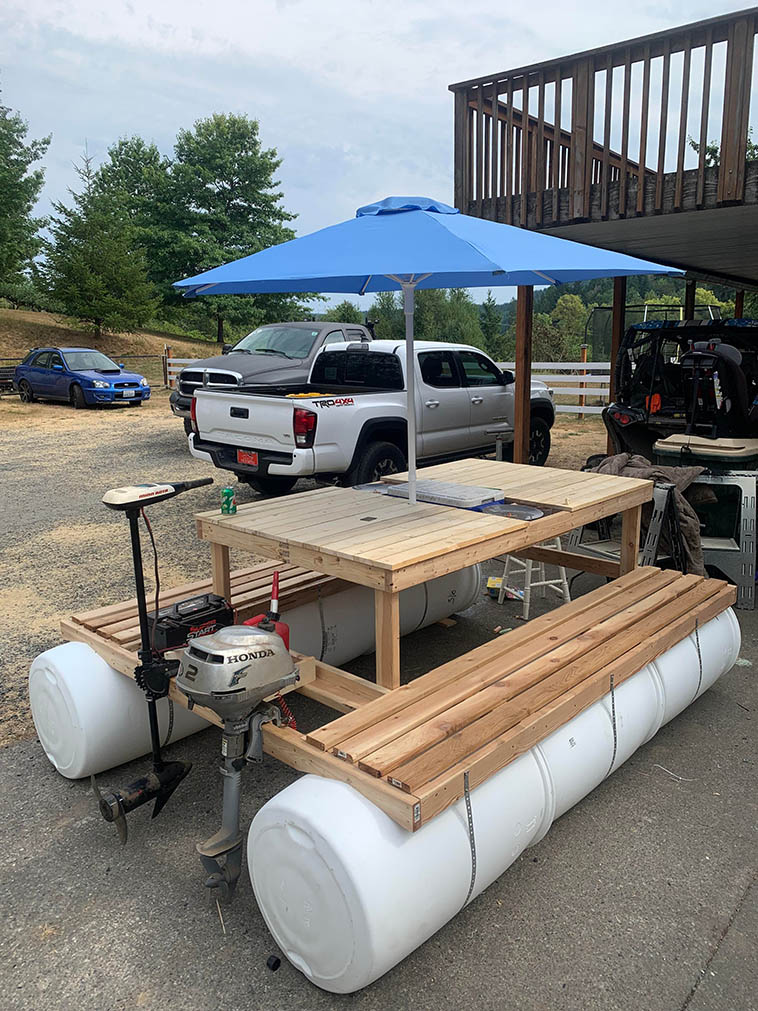 “Решил построить плавучий стол для пикника. Скоро буду на воду спускать и испытывать в деле этого красавца.”