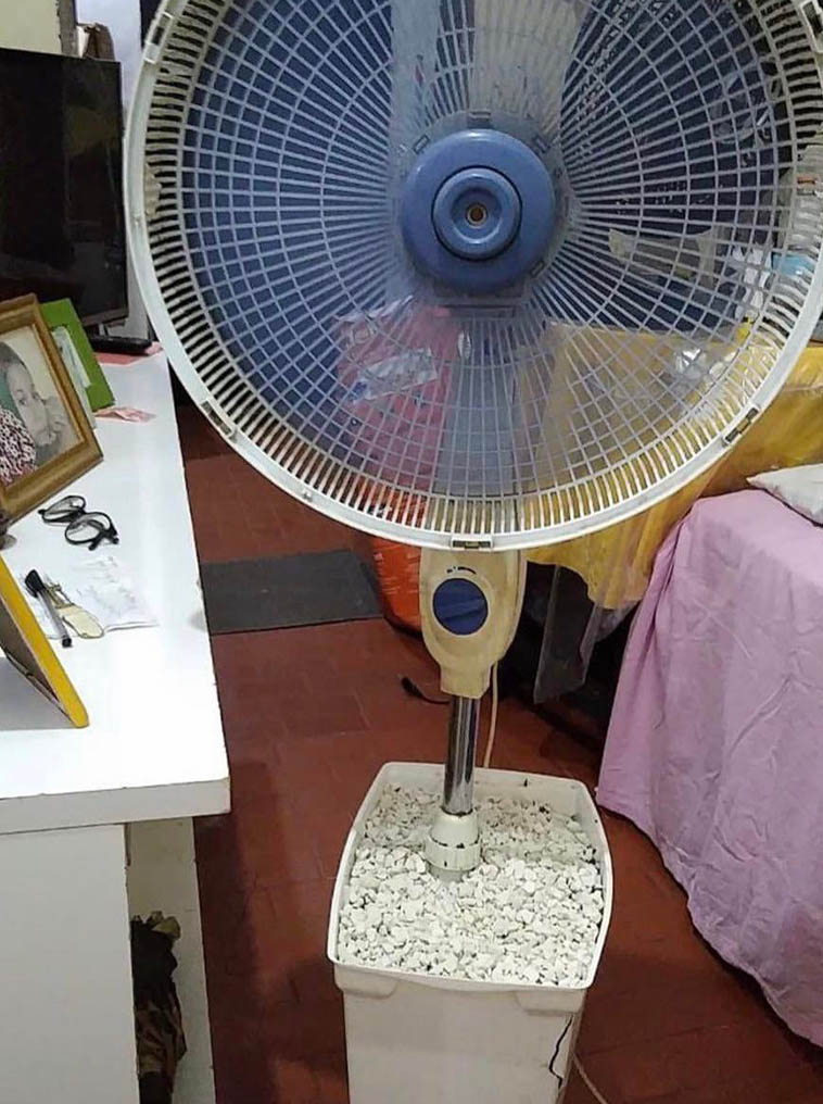 “Стойка вентилятора сломалась, так что бабушка её немного модифицировала”
