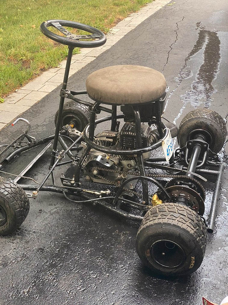 Чудаковатый самодельный карт с табуреткой вместо сидения