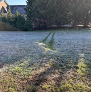 “Лучи солнца, отражающиеся от окна, растопили иней у меня на заднем дворе. Выглядит это так, будто здесь ночью была машина из “Назад в будущее”, и она переместилась во времени.”