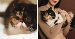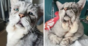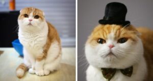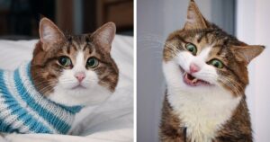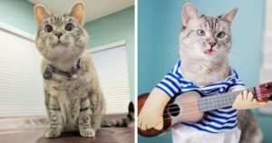 Кот по кличке Тоби радикально отличается от кошачьих сородичей своей необычной внешностью. У него крайне эластичная кожа, делающая его похожим на собаку породы мопс. Тоби страдает врождённым синдромом, который связан с недостаточной выработкой коллагена. Однако эта особенность не мешает хвостатому наслаждаться жизнью.