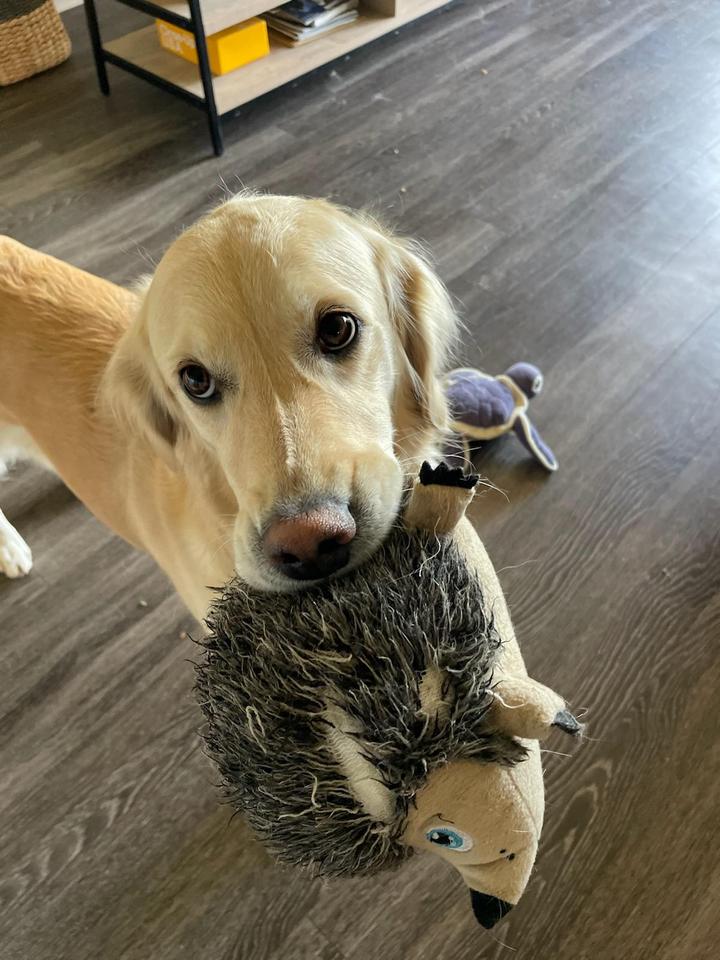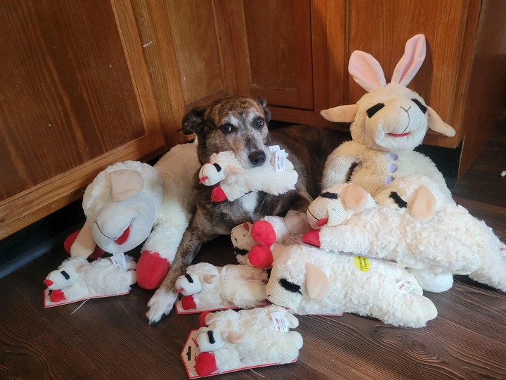 12. “Наш пес очень жизнерадостный и игрушки у него такие же”