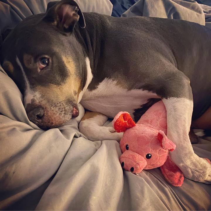 6. “Когда мне становится грустно, собака берет свои любимые игрушки, ложится возле меня и смотрит вот таким преданным и любящим взглядом”