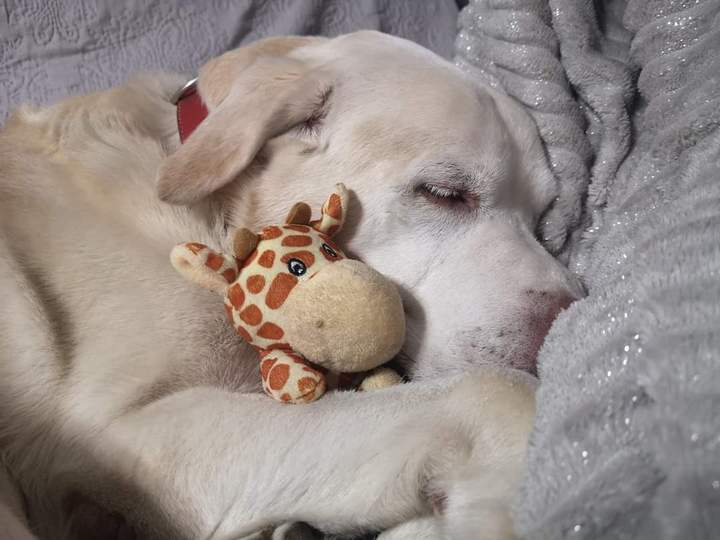 9. “Сегодня в магазине мы отыскали игрушку, которую наш пес любил больше всего, когда был щенком. Он так обрадовался, что носится с ней весь день и даже уснул, сжимая ее в лапках.”