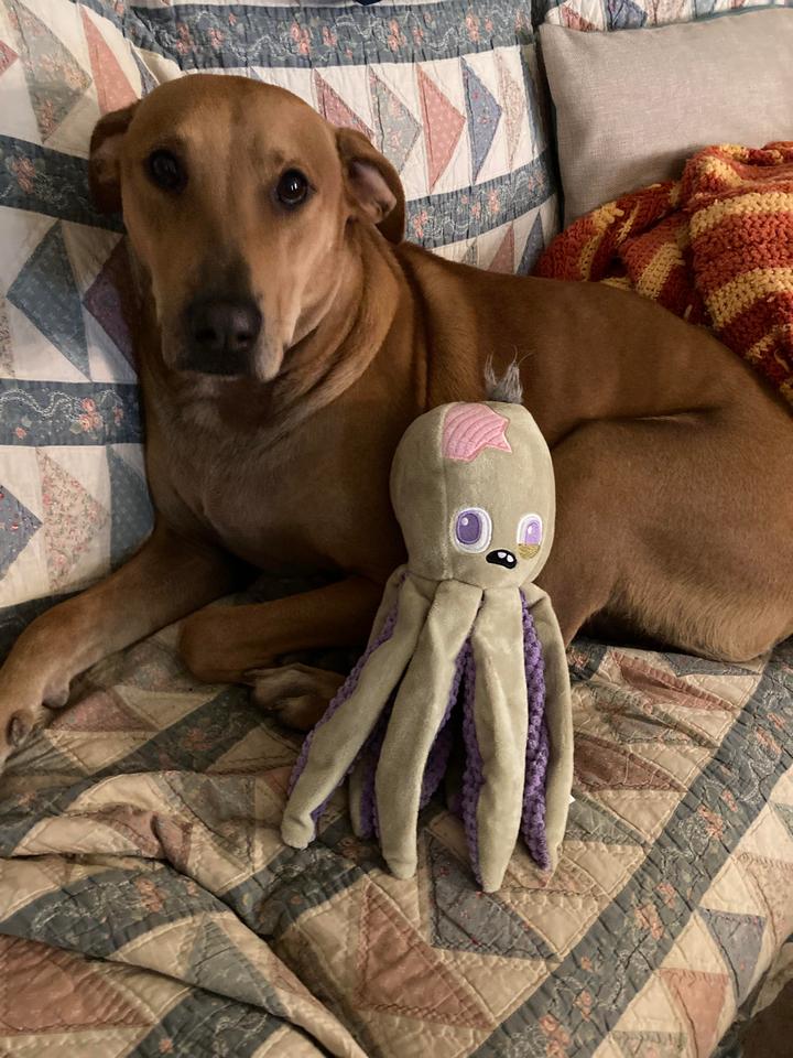 5. “У моего пса очень необычная мягкая игрушка, ведь вряд ли вы когда-нибудь еще видели зомби-осьминога.”