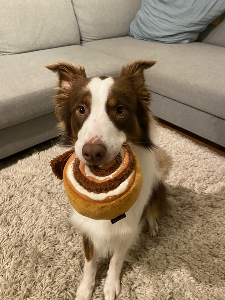 8. “У моей собаки есть игрушечная булочка с корицей, и эта игрушка очень ей идет”