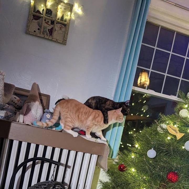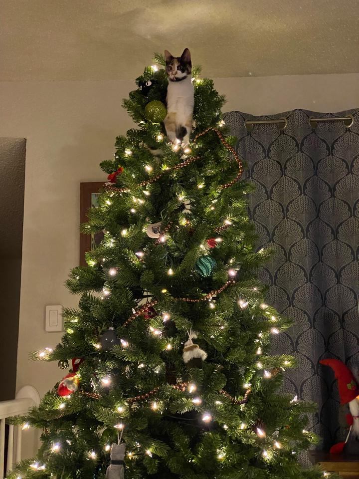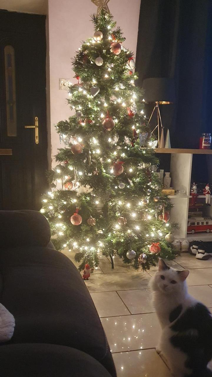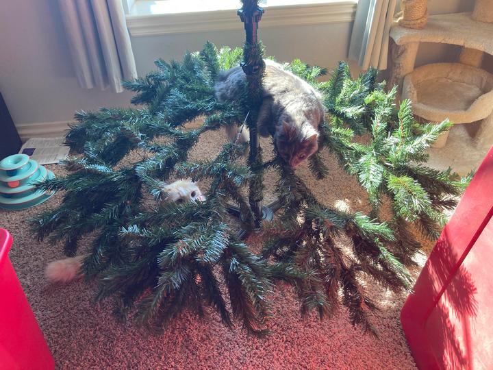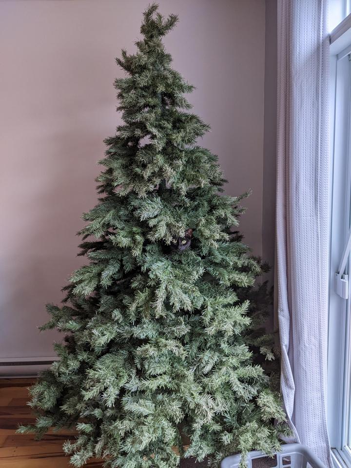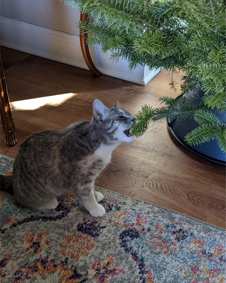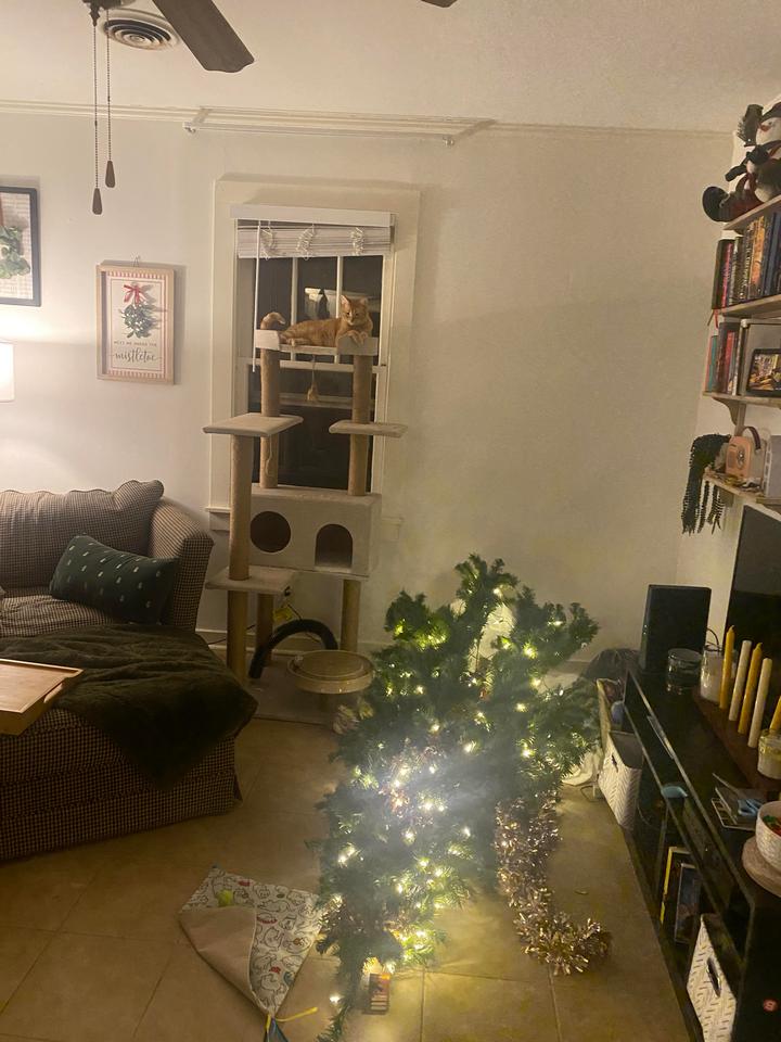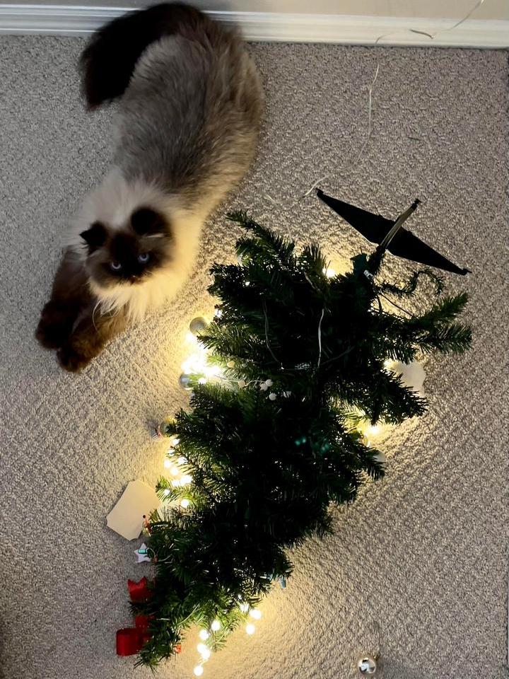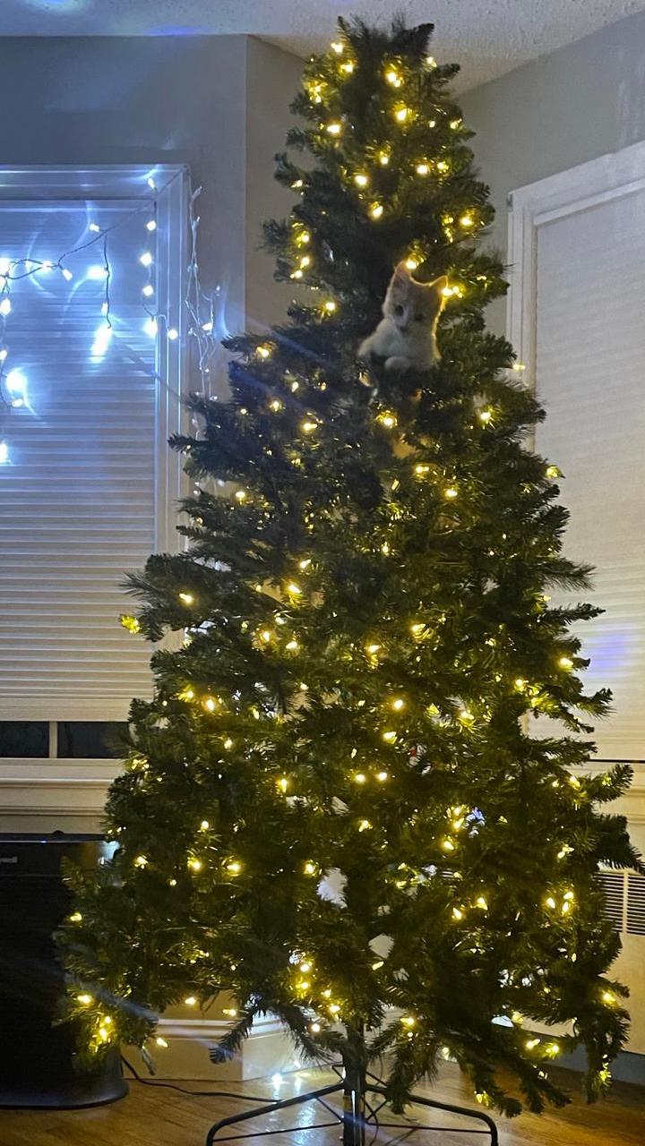 5. “В этом году у нас довольно большая елка, но кот не оставляет попыток её повалить”