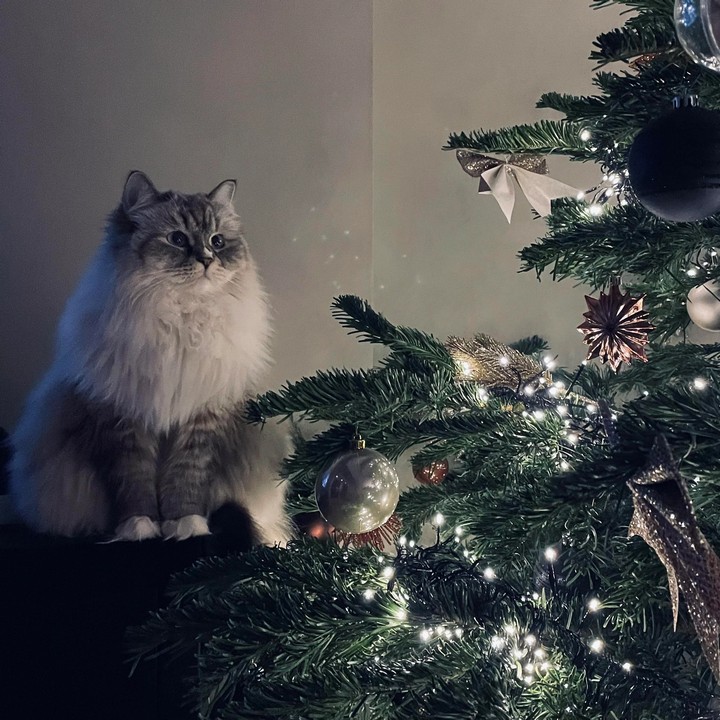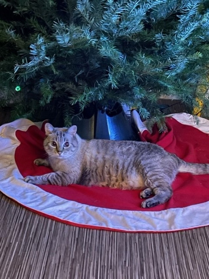 14. “Котик мило лежит под елочкой, но на самом деле ждет не дождется, когда я выйду из комнаты”
