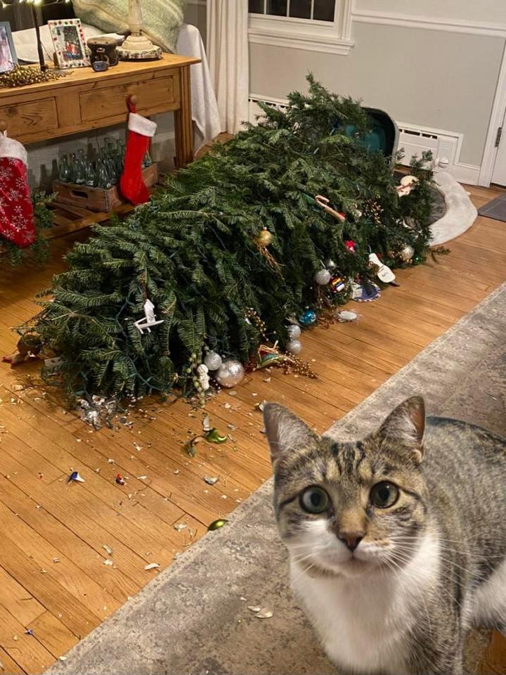 10. Этот негодяй не просто перевернул елку, но еще и выглядит весьма довольным проделанной работой