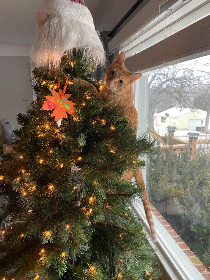 16. “Когда мой кот видит елку, в нем сразу просыпаются гены его диких сородичей, которые с легкостью лазят по деревьям”