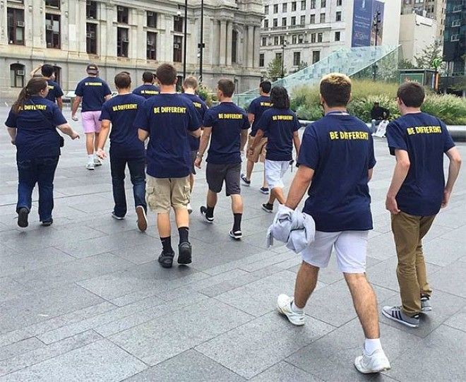 3. Надпись на футболках “Будь другим”