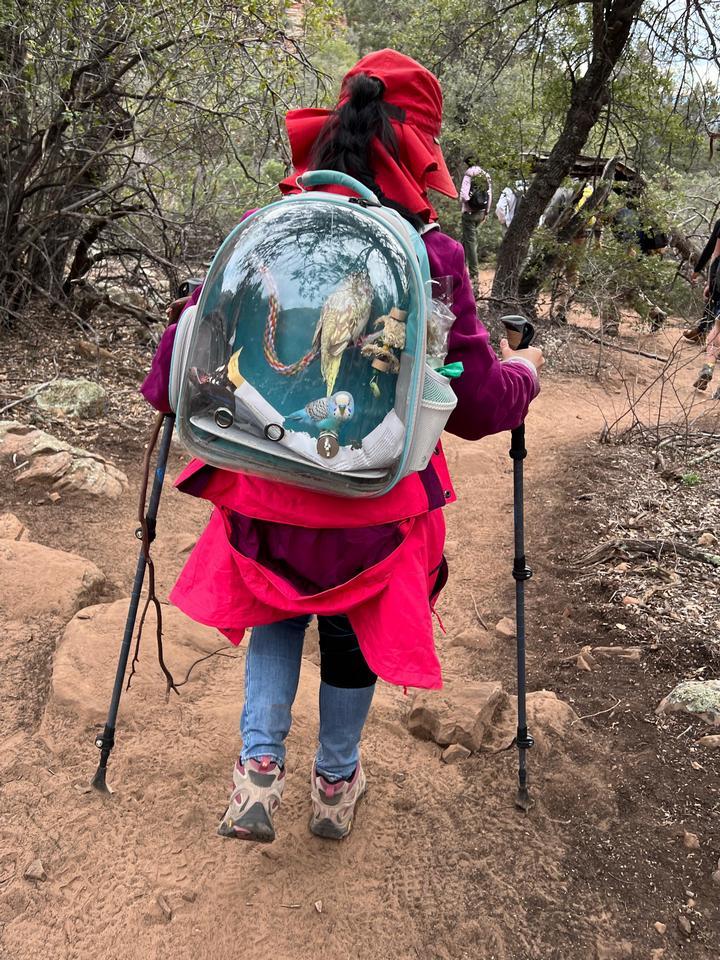 13. “Женщина захватила в поход двух своих попугаев”