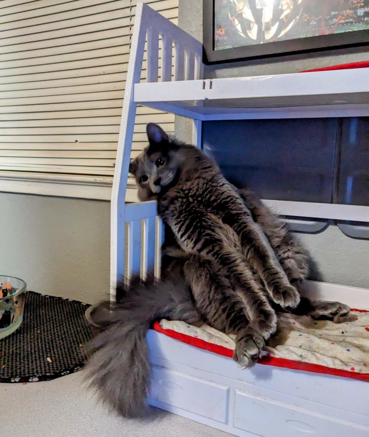 “Мой котик просто отдыхает на первом этаже своей двухъярусной кроватки, но выглядит при этом очень смешно”