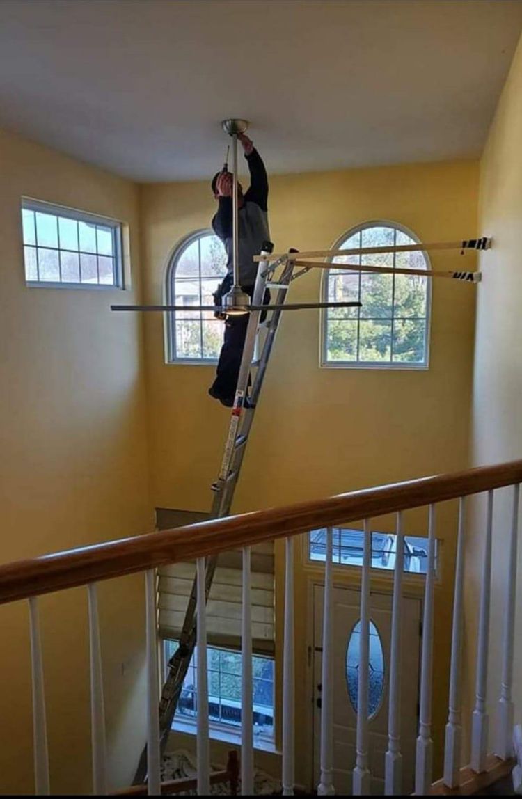 Непонятно, что здесь не так, ведь внизу есть ещё одна лестница, на которую приземлится парень, когда упадёт