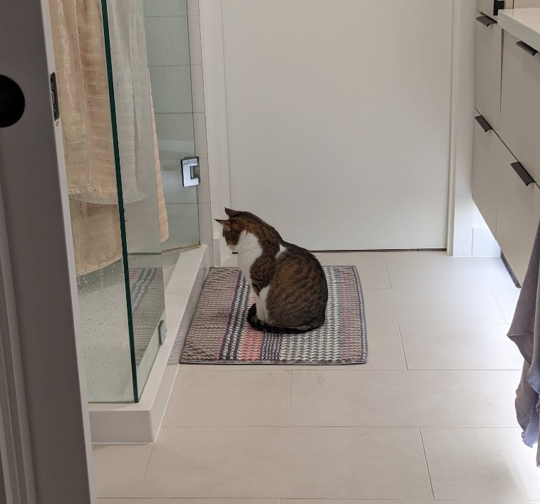17. “После того, как кто-нибудь принял душ, кошка любит вот так сидеть и наблюдать за душевой кабинкой несколько минут”