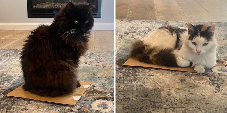 3. “Обычно коты предпочитают сидеть внутри пакета, но эти двое выбрали несколько другой вариант. Они еще и дрались за то, чтобы посидеть на пакете.”
