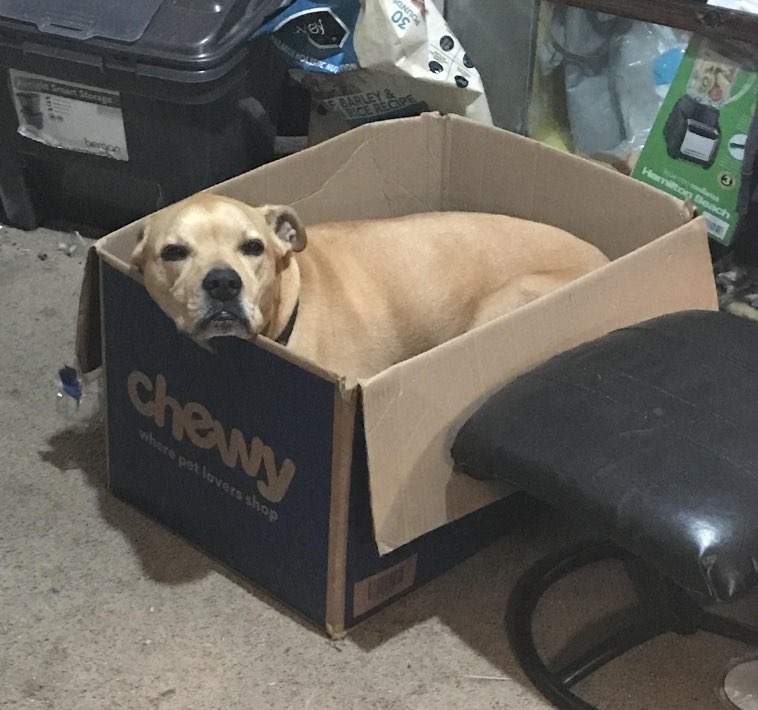 8. “Кто сказал, что в коробках любят сидеть только коты. Моя собака, например, тоже обожает проводить так свое время.”