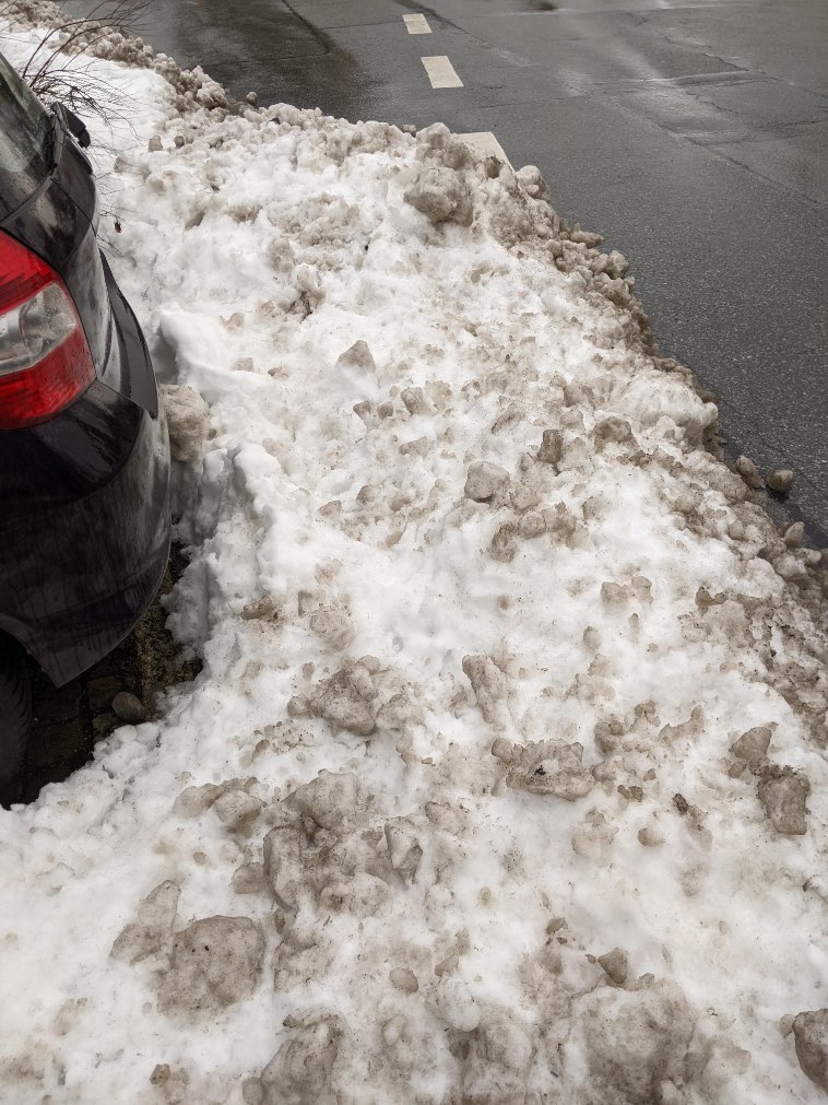 “Снегоуборщики сделали прочную снежную стену за моей машиной. Понятия не имею, как мне теперь выехать отсюда.”
