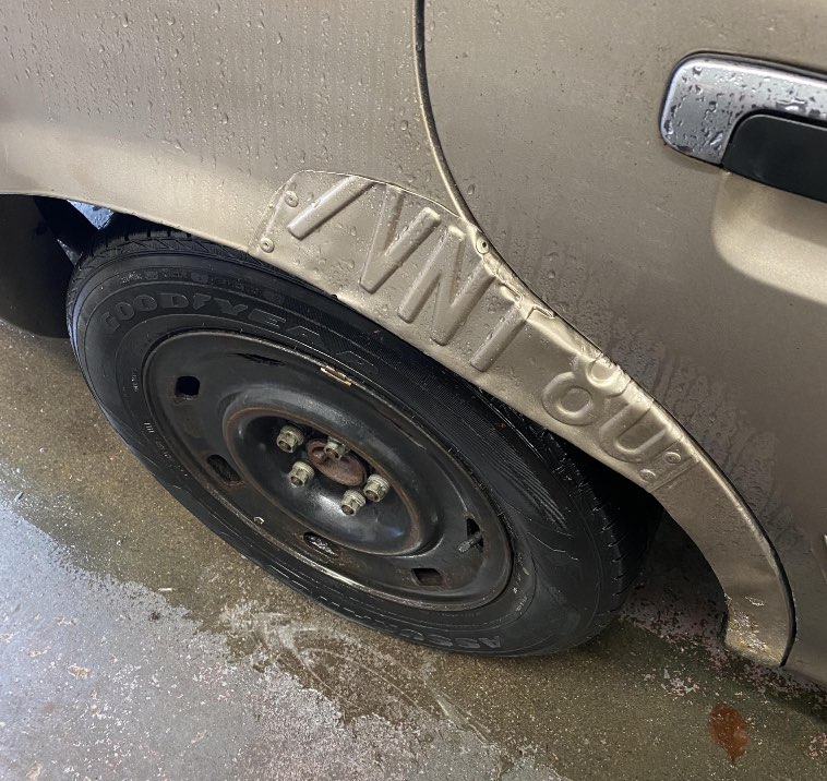 “На этой машине ржавчину отремонтировали при помощи номерного знака, да еще и покрасили это. Что?”