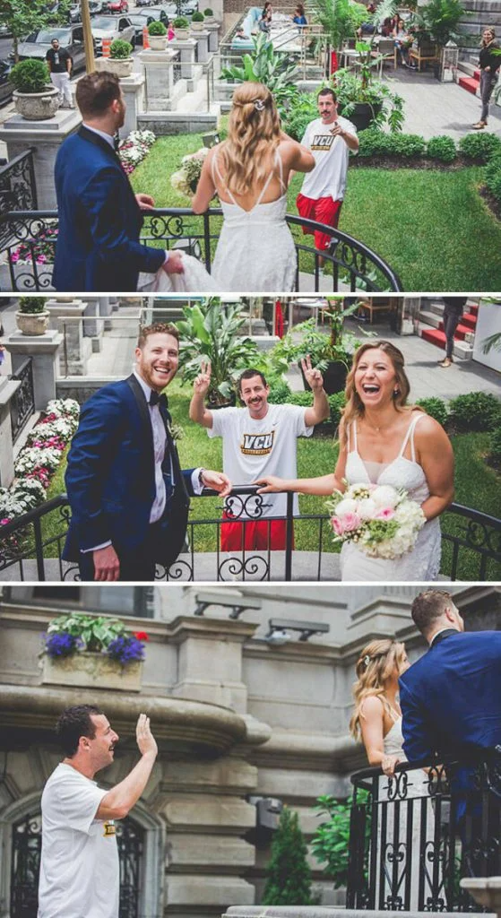 В Монреале молодожены увидели проходящего по улице Адама Сандлера и он позировал для совместного снимка