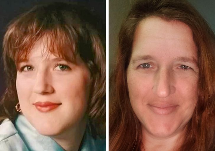 «Фото слева сделано в старшей школе, мне там 18 лет. Ну а справа — мое недавнее селфи. Мне 42»