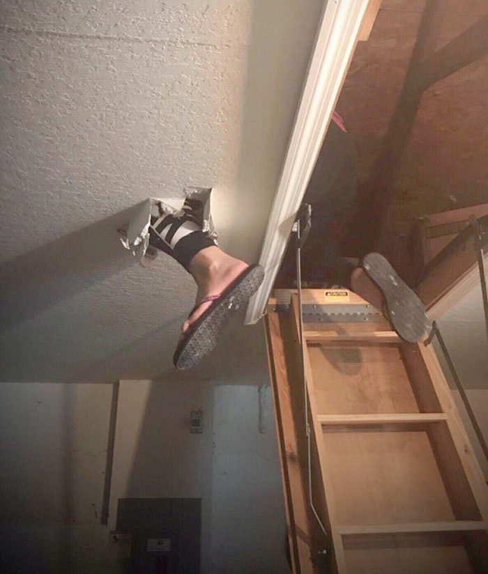 Зато теперь женщина точно знает, что такое гипсокартон. Возможно, эта оказия спасла её от серьёзных травм, потому как спуск ёлки с чердака по лестнице с ветнамками на ногах может обернуться ещё тем приключением.