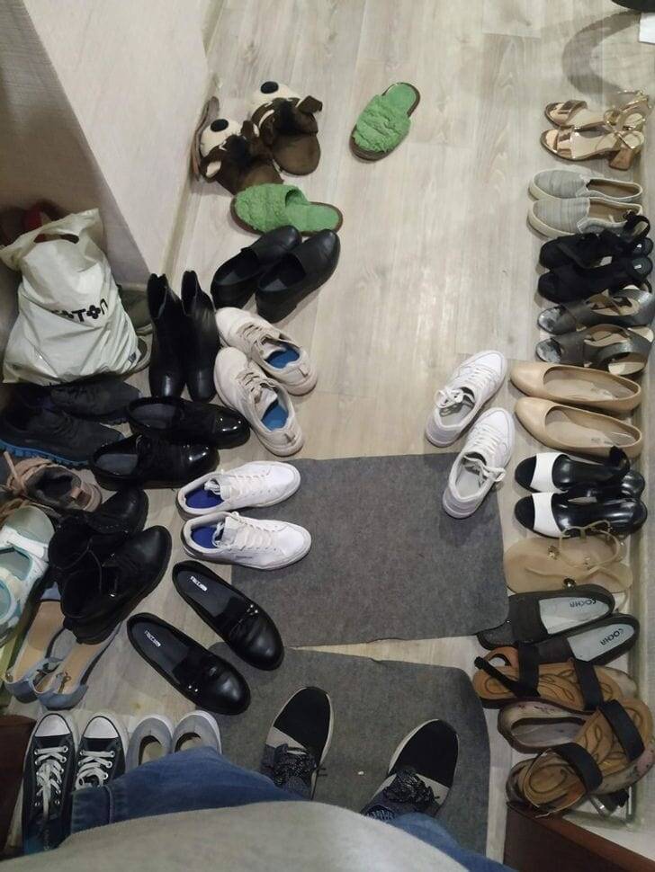 3. «Мы с мужем купили одинаковые кроссовки. Мой кроссовок запросто помещается в его»