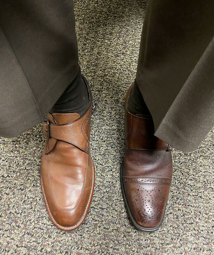 «Надел разные туфли, чтобы спросить мнение жены и забыл переобуться перед отъездом на работу. Мне пришлось весь день ходить в разной обуви»