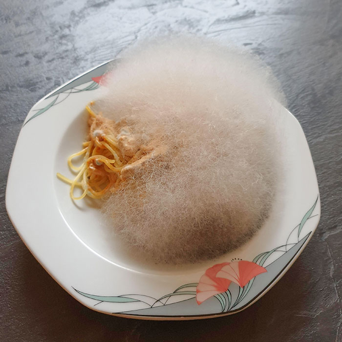 «На целую неделю забыла в микроволновке спагетти с грибами. Теперь это пушистый шарик плесени»