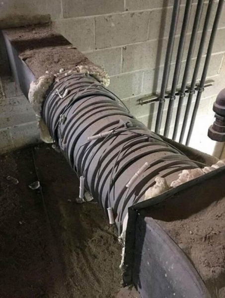 Кто не рискует, тот сидит без горячей воды. Наверное, именно такой мудростью руководствовались монтажники этого внушительного бойлера, держащегося «на честном слове».