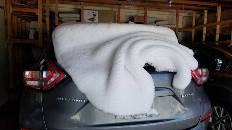 Снег на машине похож на одеяло