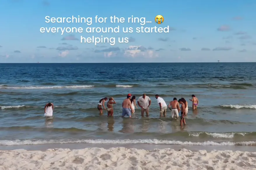 Девушка потеряла обручальное кольцо в океане после предложения на пляже. Ее громкое «Да!» быстро превратилось в «О, нет!»