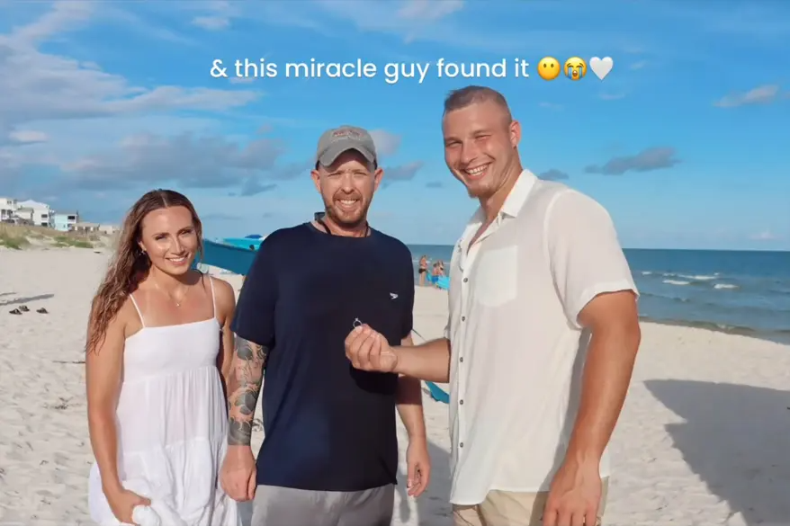 После нескольких минут испуганных поисков внимательный мужчина заметил кольцо и, как видно на видео в TikTok, вернул его счастливой паре.