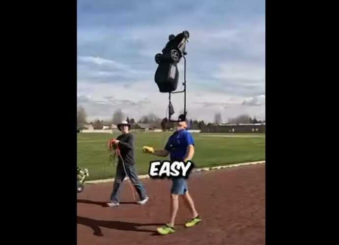 Раш, обладатель наибольшего количества титулов, занесенных в Книгу рекордов Гиннесса, попытался установить рекорд на трассе в Бойсе, штат Айдахо, с помощью электрической газонокосилки.