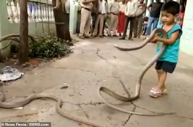 В индийском штате Харьяна сделали видеозапись, которая шокировала соцсети. Пораженные зрители наблюдают за тем, как трехлетний малыш играет с двумя огромными змеями, совершенно их не опасаясь. Он хватает их, бросает на землю, снова поднимает за хвост.