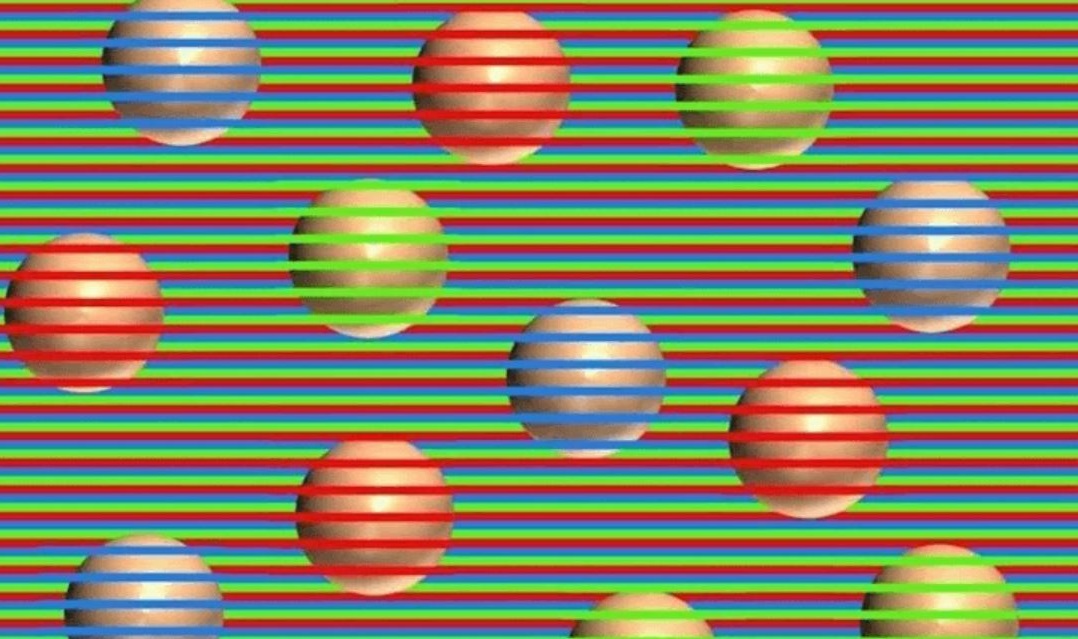 Перед вами картинка с очередной оптической иллюзией. На первый взгляд кажется, будто шары имеют разный цвет: красный, синий и зеленый. В действительности же все они одинакового цвета. Верится с трудом, не так ли?