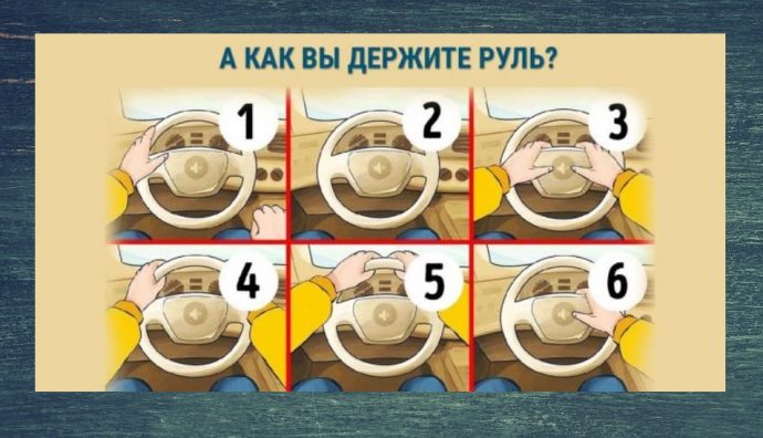Если вы чаще всего держите руль именно так, то вы целеустремлённый человек. Вы умеете добиваться желаемого и достигать высот. Любовь к саморазвитию — это в вас заложено природой. Тренинги, курсы, чтение литературы — вы сделаете всё для того, чтобы перейти на следующую ступень. В вас пылает любовь к знаниям и именно это ведёт вас по жизни вперёд.