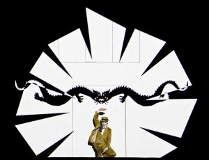 Главная декорация для берлинской «Волшебной флейты» – занавес из потрепанного красного бархата, как в старом кинотеатре. За ним – белый экран, из которого на балкончиках «выскакивают» суетливый принц Тамино и печальная Памина, оплакивающая свою любовь, гуляка птицелов Папагено и его Папагена в образе роскошной русалки, кокетливые придворные дамы Царицы Ночи. А на экране летит ежесекундными метаморфозами анимация Пола Бэррита. Описать ее – значит рассказать сказку: хитрая Царица Ночи в виде бабочки-скелета, воодушевляющий маг Зарастро, цветы, птицы, механические головы, розовые слоны, огонь и зимний лес, в котором поет свою лучшую арию Памина, оплакивая любовь. В этой сюрреалистической анимации летит само насмешливое воображение! Невероятная проекция полностью заменила декорацию и добавила волшебства и юмора в моцартовскую оперу.