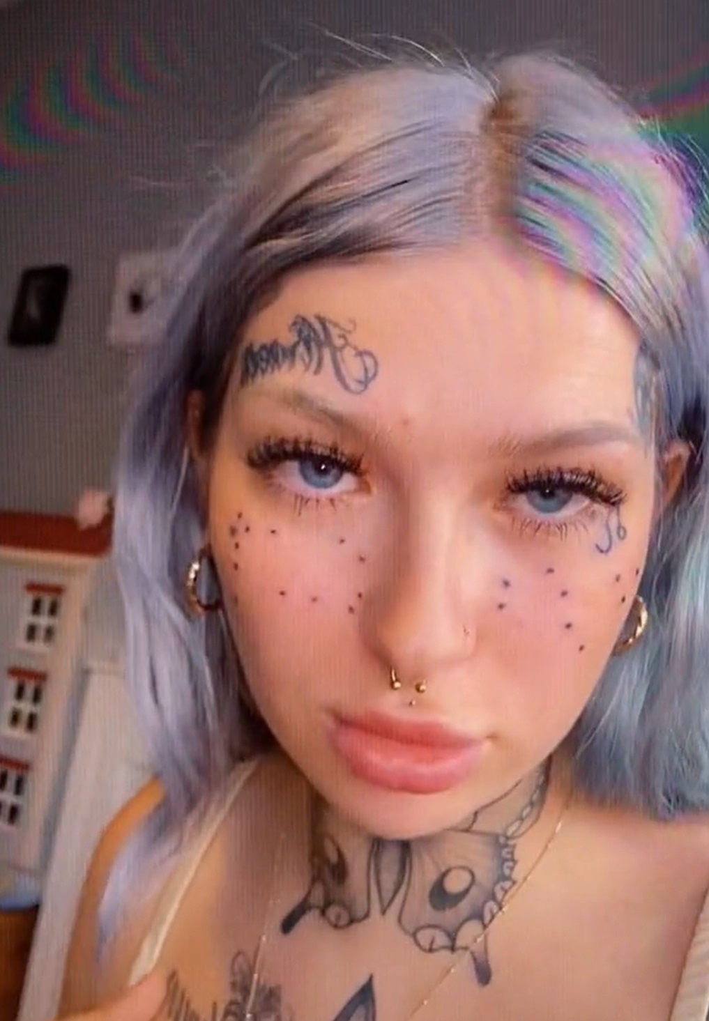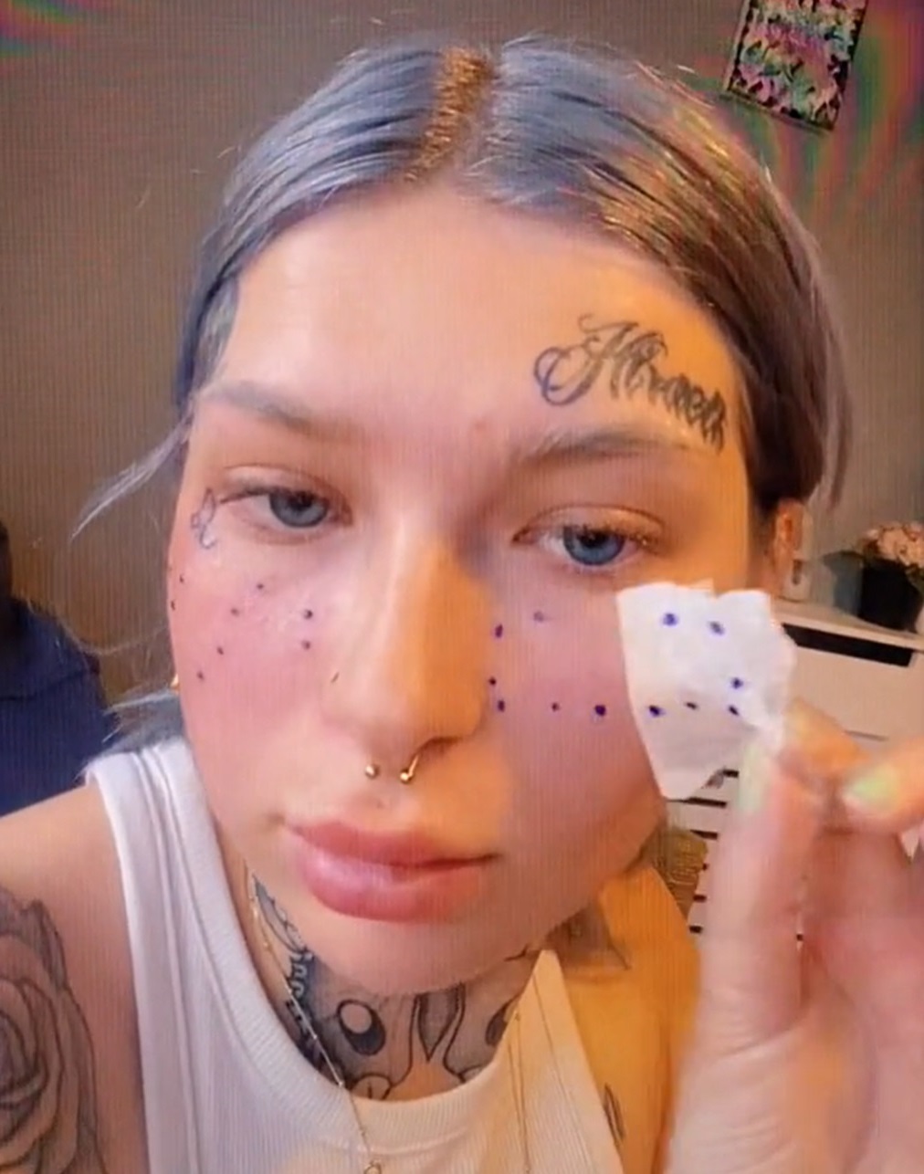 Девушка решила поэкспериментировать с татуировкой и нанесла на лицо временную картинку, следа от которой не должно было остаться уже через несколько дней.