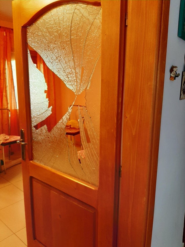 Из-за сильного ветра образовался сквозняк, дверь хлопнула и разбилось стекло