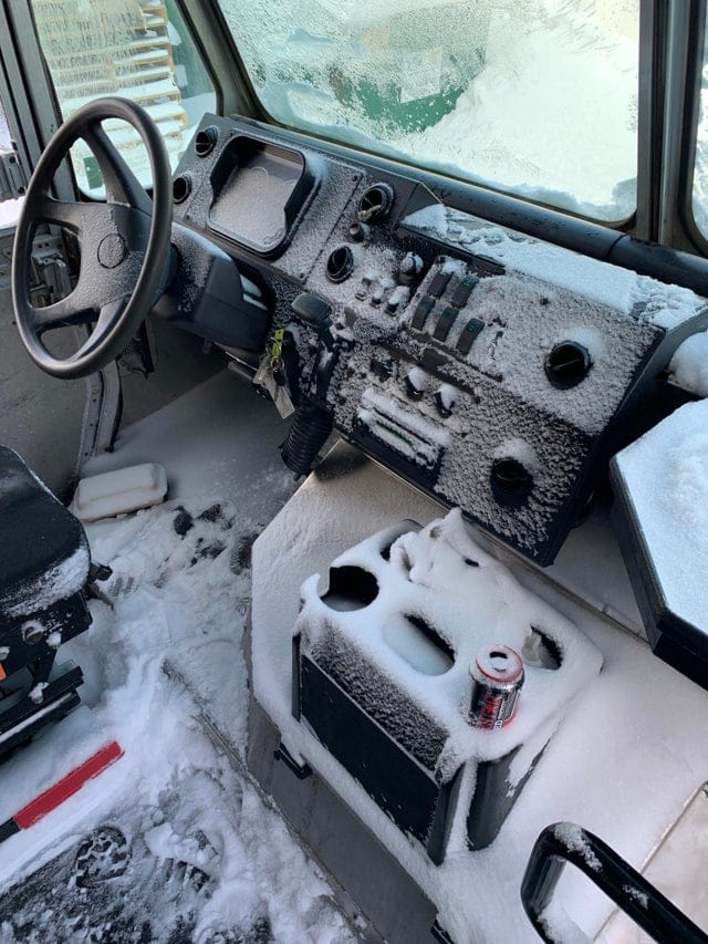 Кто-то забыл закрыть дверь своего грузовика во время снегопада