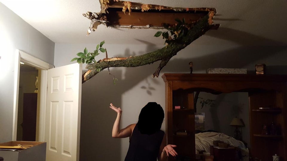 Соседское дерево врезалось в спальню моих родителей во время непогоды